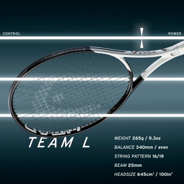 Raketa SPEED TEAM L je součástí úspěšné řady SPEED, kterou doporučuje Novak Djoković. Je lehčí než model TEAM a snadno se ovládá. Nová verze má nový, elegantní a asymetrický design s matnou a lesklou úpravou a chromovými detaily.