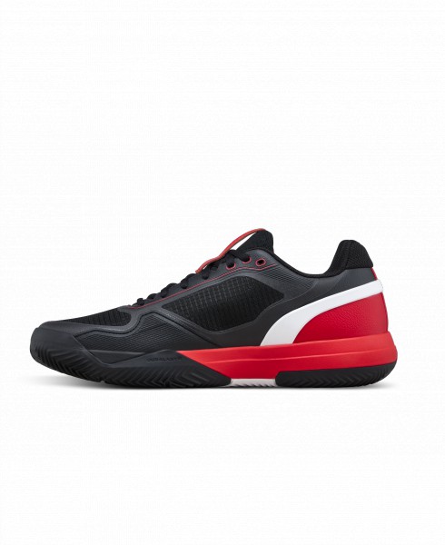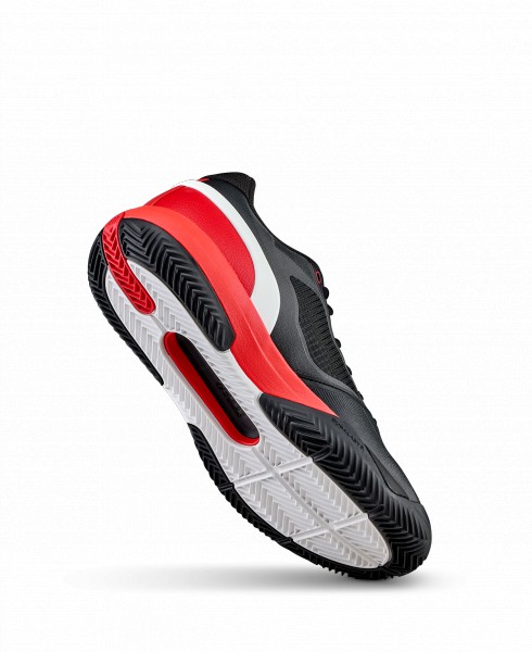Speciální podešev určená pro antuku poskytuje spolehlivou trakci a kontrolovaný skluz, což je klíčové při agresivním pohybu po kurtu. Tlumení mezipodešve pomáhá absorbovat nárazy a snižuje zatížení chodidla při intenzivní hře. Pevná pata a stabilizační prvky ve střední části boty podporují jistotu při laterálních pohybech.