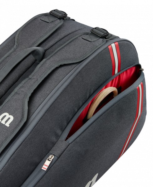 Wilson Tour 6 Pack Black je vybaven tak, aby poskytl dostatečný prostor pro až 6 raket, sportovní oblečení a další tenisové potřeby, přičemž si zachovává přehledné a logické uspořádání. Hlavní přihrádka pojme oblečení, ručník nebo míče, zatímco další oddíly slouží k separaci raket a drobných doplňků. Díky tomu máš vše organizované a rychle po ruce.